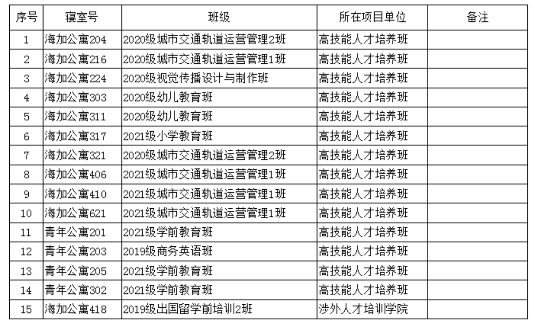 根据公司《员工寝室文明等级和文明寝室评比细则》,各项目单位在日常检查情况的基础上,择优推荐。经评选,拟定海加公寓204等15间寝室为2021-2022学年第一学期公司文明寝室,现予以公示。