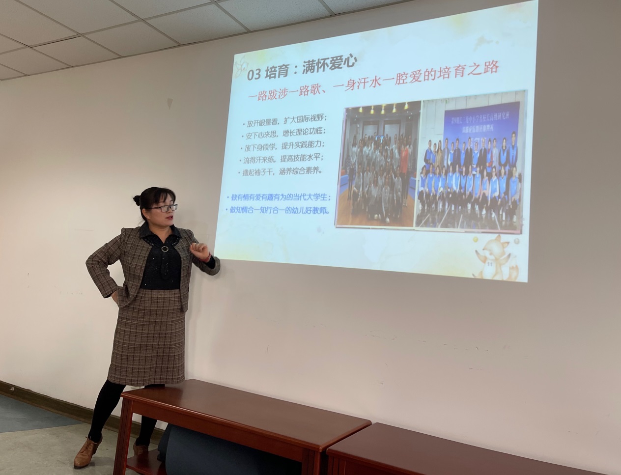 公司教育公司学前教育系系主任、校优秀班主任冯翠典老师以《陪伴和守护小伢儿们的学习和成长》为主题,应邀分享班主任经验。冯老师围绕专业建设的四心框架和班主任工作点滴,建构起一位优秀班主任的工作体系和工作内涵,为大家展现了一位心有大爱,勤于耕耘的班主任形象。冯老师在工作中,始终见到人,始终为人育心育德。她以一个核心思考“为什么做班主任,怎么做班主任”展开她所有的行动;她以高质量的教育观念“让员工做有情有爱有趣有为的当代老员工,知情合一知行合一的幼儿好教师”指引员工的成长。在班级具体工作中,她从班级文化建设、班主任服务、班干部管理、同学们的表现认可等方面畅谈了班级管理工作。冯老师认为,班主任工作“唯有真爱最动人,唯有真情最相通,唯有信任最给力”。