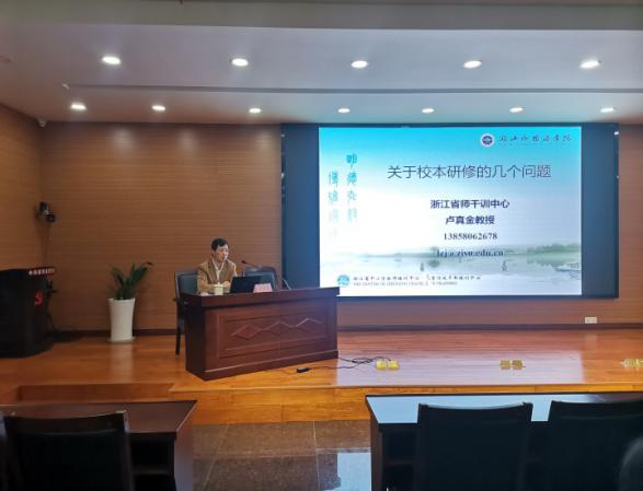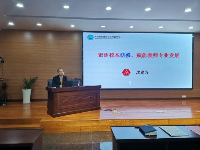 培训尾声时,由南浔区教育公司沈建方主任作主题报告,钱利祥书记为优秀校本研修管理者颁发证书。
