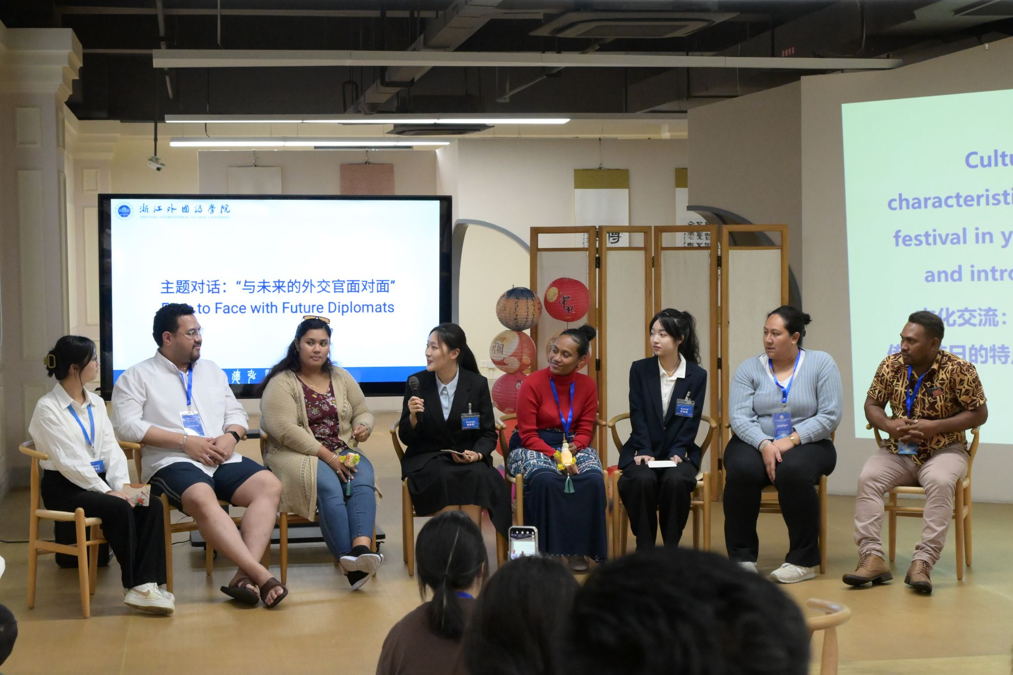 时值秋分,外交官员们参观了校园,并参与了英文公司组织的“秋分三韵:以‘桂’迎客·结缘·送友”主题文化体验活动,共同分享本国的传统节日及其背后的文化故事。外交官员们还分享了自己从事外交事业的故事,鼓励浙外学子充分利用大学学习的机会,提升自身专业能力。来自所罗门群岛的Wilfred非常珍惜这次和中国青年面对面交流的机会,他希望未来能继续和中国以及其他国家保持紧密的联系,进一步促进所罗门群岛以及太平洋岛国的发展。