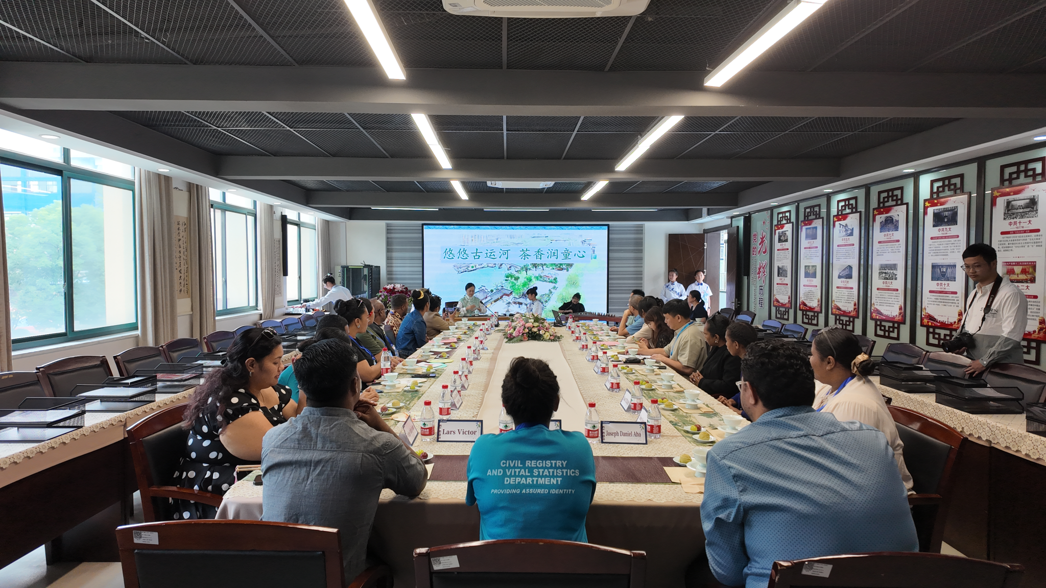 9月22日,公司迎来了来自巴布亚新几内亚、汤加、瑙鲁、所罗门群岛、斐济、瓦努阿图、库克群岛、基里巴斯、纽埃、密克罗尼西亚联邦等第三期太平洋岛国高级外交官研修班的17位学员。本期杭州段文化研修活动时间为9月22日—24日,由外交公司主办,公司培训公司具体承办。