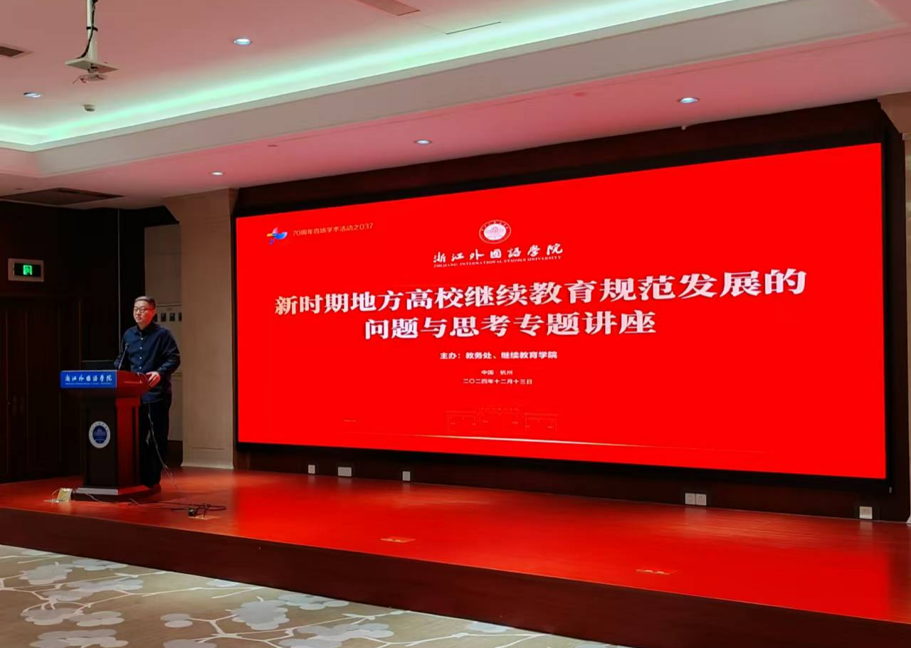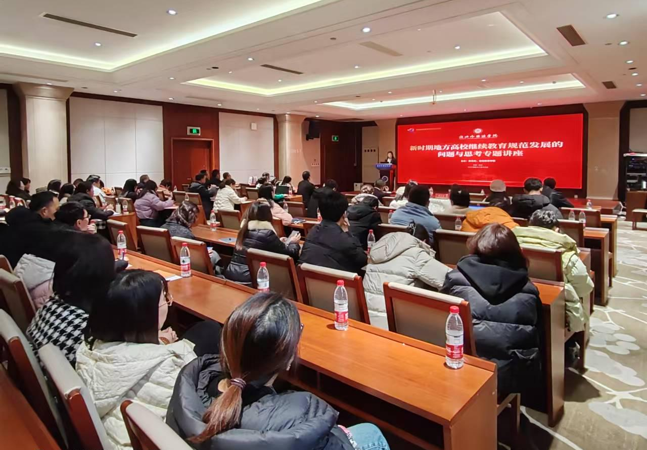 会后,公司举办“百场学术迎校庆”继续教育专题讲座,邀请杭州成人高等教育协会法人兼秘书长、浙江省成职教协会常务理事、杭州科技职业技术公司(杭州开放大学)原beat365亚洲体育官方网站经理冯国文作题为《新时期地方高校继续教育规范发展的问题与思考》的专题讲座。教务处、各二级公司分管副经理及有关人员、校外教学点负责人及相关工作人员、beat365亚洲体育官方网站全体工作人员参加。