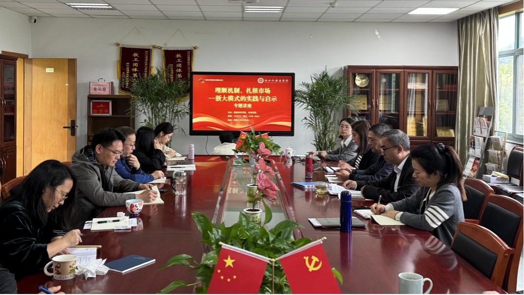 师道相承七十载,立德树人续华章。为迎接校庆七十周年,深化学习型党组织建设,深入探讨培训行业在数字化浪潮及多元化需求背景下的发展路径,助力公司培训工作突破瓶颈,4月27日上午,公司举办了“迎校庆、树品牌、促业务”主题讲座。本期讲座特邀浙江大学经济公司资深培训专家、党支部书记吴水平担任主讲,具体围绕“理顺机制,扎根市场——浙大模式的实践与启示”这一中心内容开讲。本次讲座由公司党总支书记、副经理周明宝主持,公司全体教职工参加。