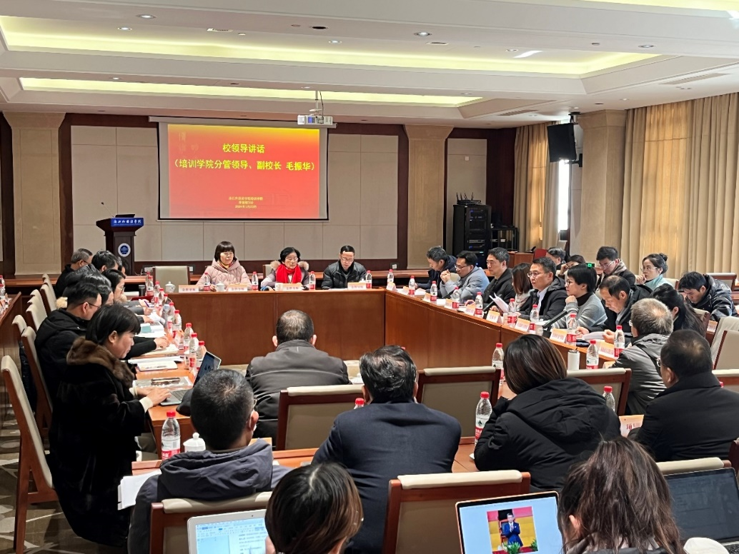 毛振华作了主题讲话,他肯定了2023年度公司培训工作取得的成绩,强调培训不仅为公司各项事业发展赋能,又可以提升社会效益,打造具有浙外辨识度的培训品牌。毛董事长结合公司培训工作实际,提出三点建议:一是加强顶层设计,深化培训改革创新;二是凝练浙外优势,孵化培训特色品牌;三是优化管理体系,推进培训提质增效。