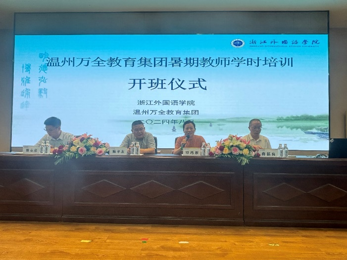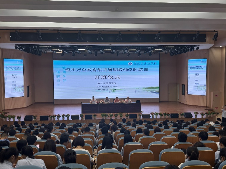8月5日上午,2024年温州万全教育集团暑期教师学时培训开班仪式在平阳县万全综合高中报告厅举行。开班仪式由公司培训中心主任蒋福良主持,公司经理章巧眉、温州万全教育集团董事长陈孝杰、温州万全教育集团副总裁林克蒙出席并讲话。