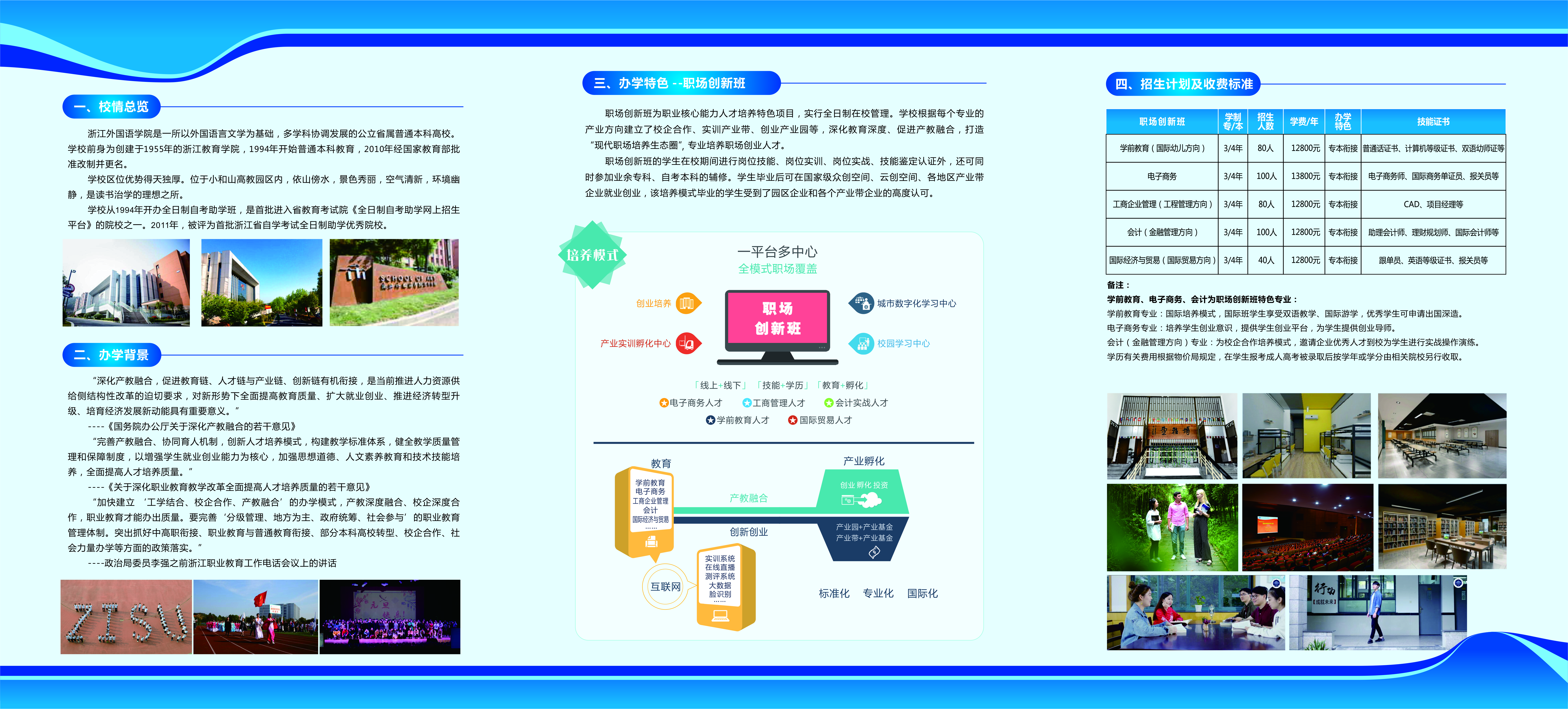 职场创新班为职业核心能力人才培养特色项目,实行全日制在校管理。公司根据每个专业的产业方向建立了校企合作、实训产业带、创业产业园等,深化教育深度、促进产教融合,打造“现代职场培养生态圈”,专业培养职场创业人才。
