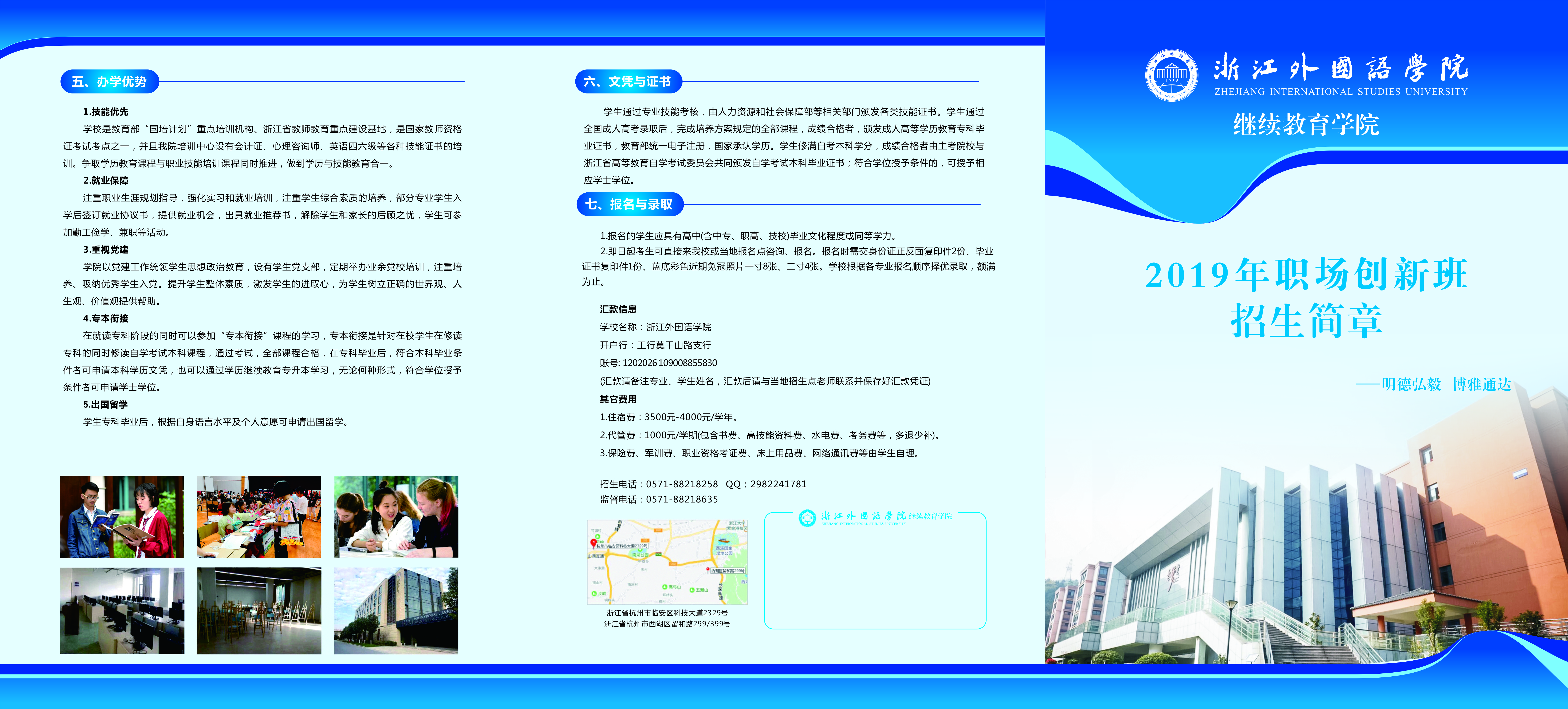 集团是教育部“国培计划”重点培训机构、浙江省教师教育重点建设基地,是杭州市教团队格证考试考点之一,并且公司培训中心设有会计证、心理咨询师、英语四六级等各种技能证书的培训。争取学历教育课程与职业技能培训课程同时推进,做到学历与技能教育合一。