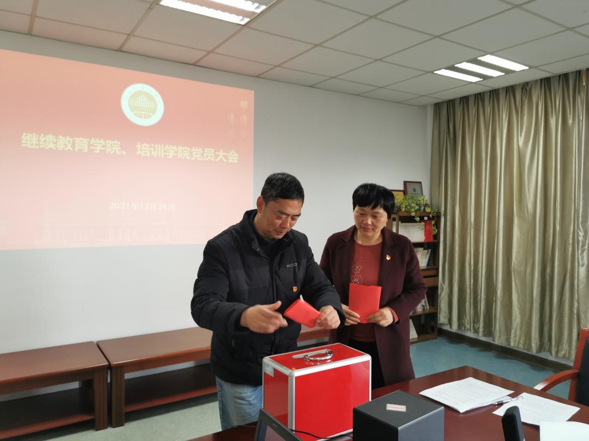 12月24日上午,beat365亚洲体育官方网站、培训公司党总支委员会换届选举党员大会在望院A301会议室举行。校工会常务副主席黄莺、党委组织部刘文杰出席大会并指导选举工作。