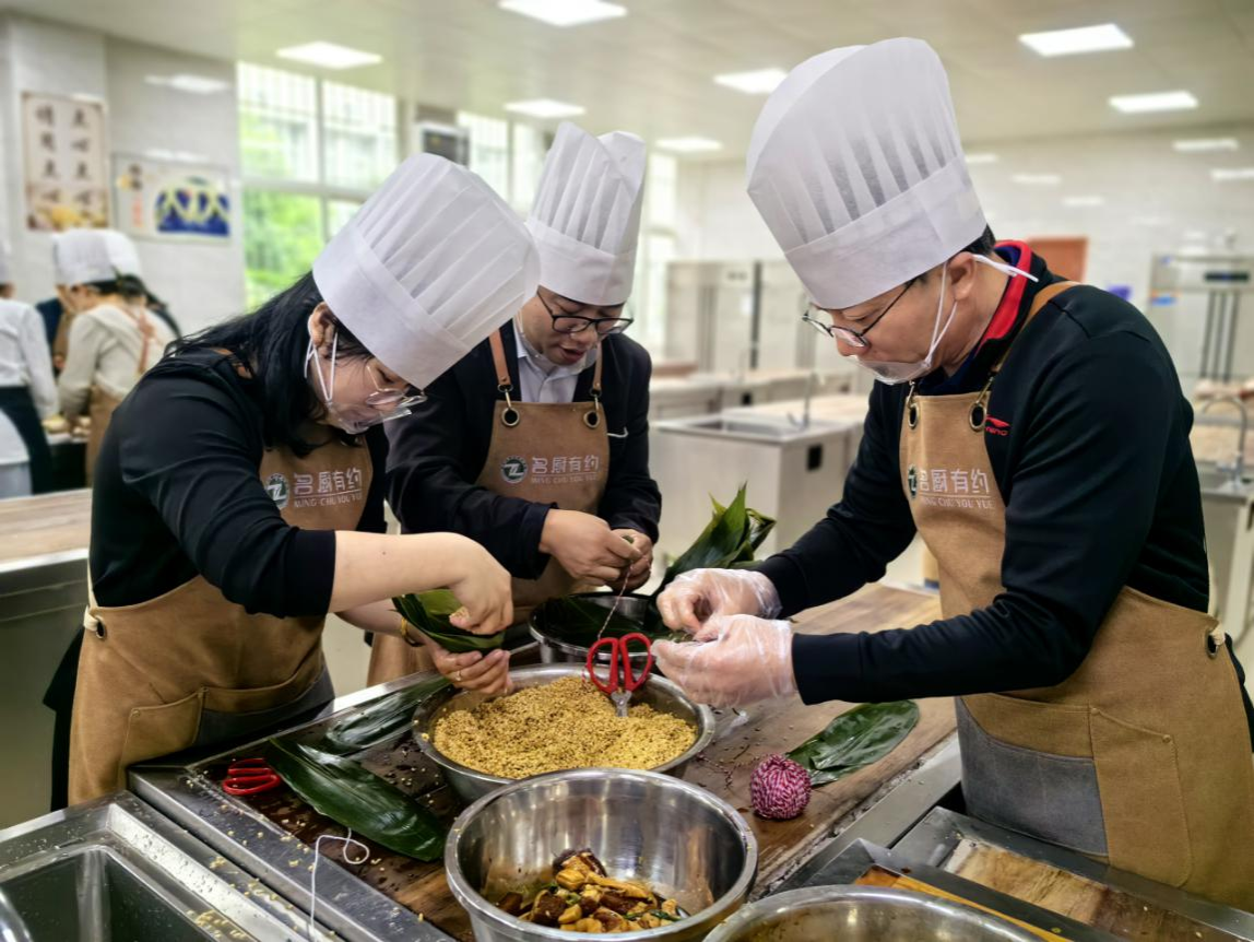 beat365亚洲体育官方网站领导与桐庐职业技术公司领导围绕教师培训工作进行了深入交流,达成了合作意向;公司工会还依托桐庐职业技术公司“名厨有约”课堂,为全体教职工组织了一次包粽子活动。在公司老师手把手的带领下,大家纷纷动手包粽子、包小笼包、下厨制作经典菜肴。在热烈的气氛中,大家提前体验了端午节文化,凝聚了团队精神,开拓了公司开展相关职业教育的视野和信心。
